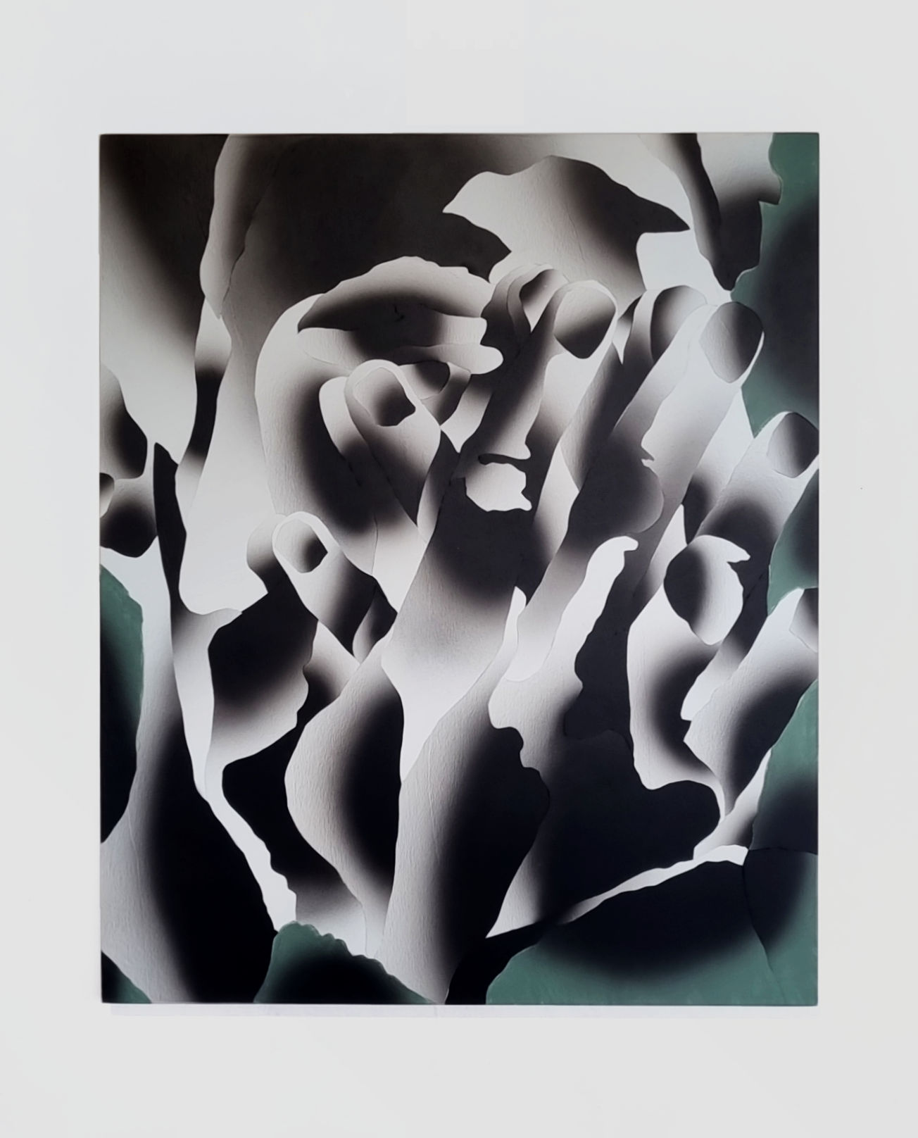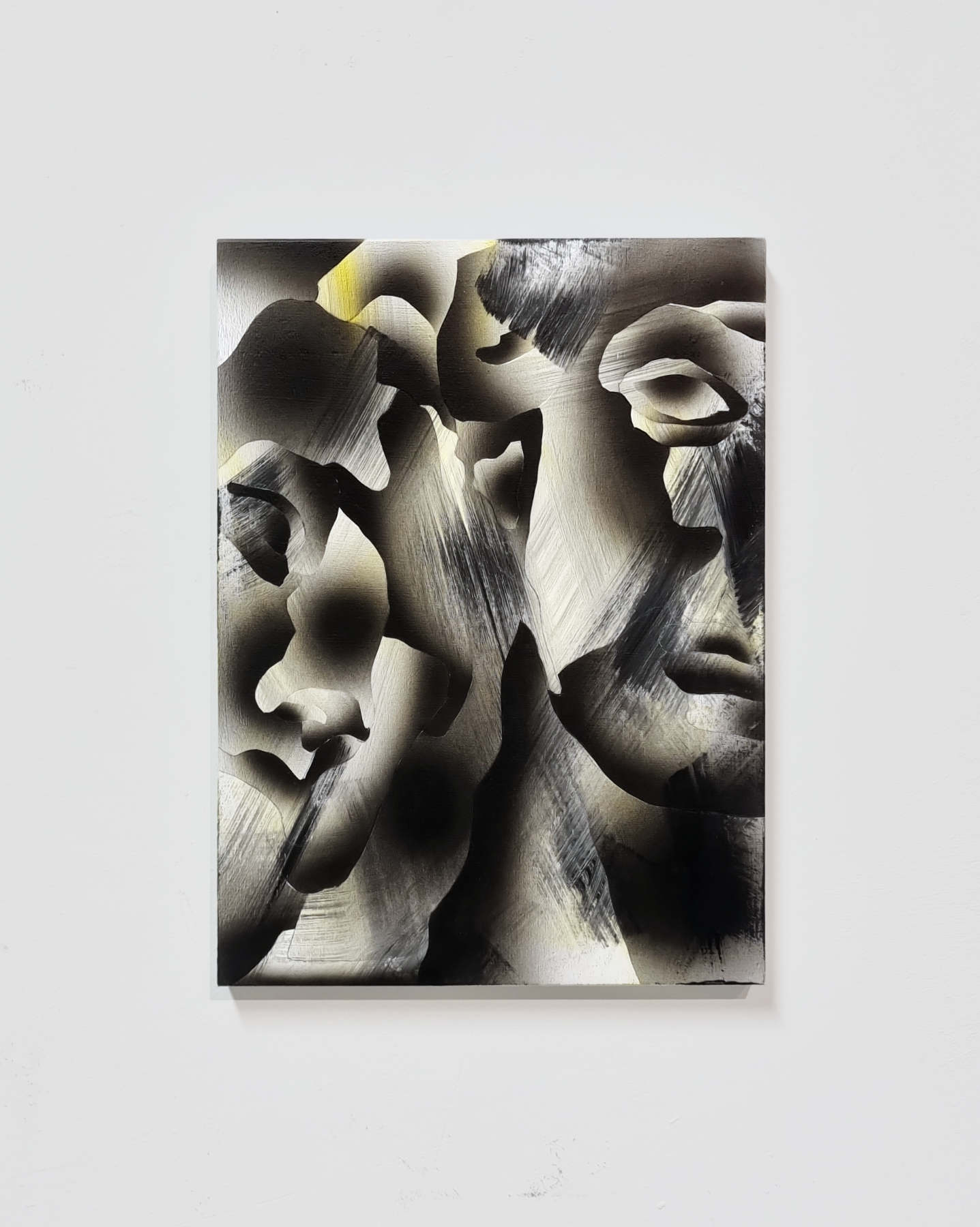 peinture fluorescente en aérosol sur papier, peinture sur verre.