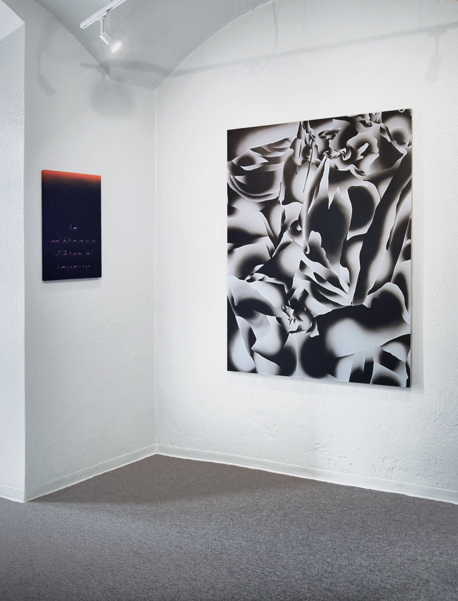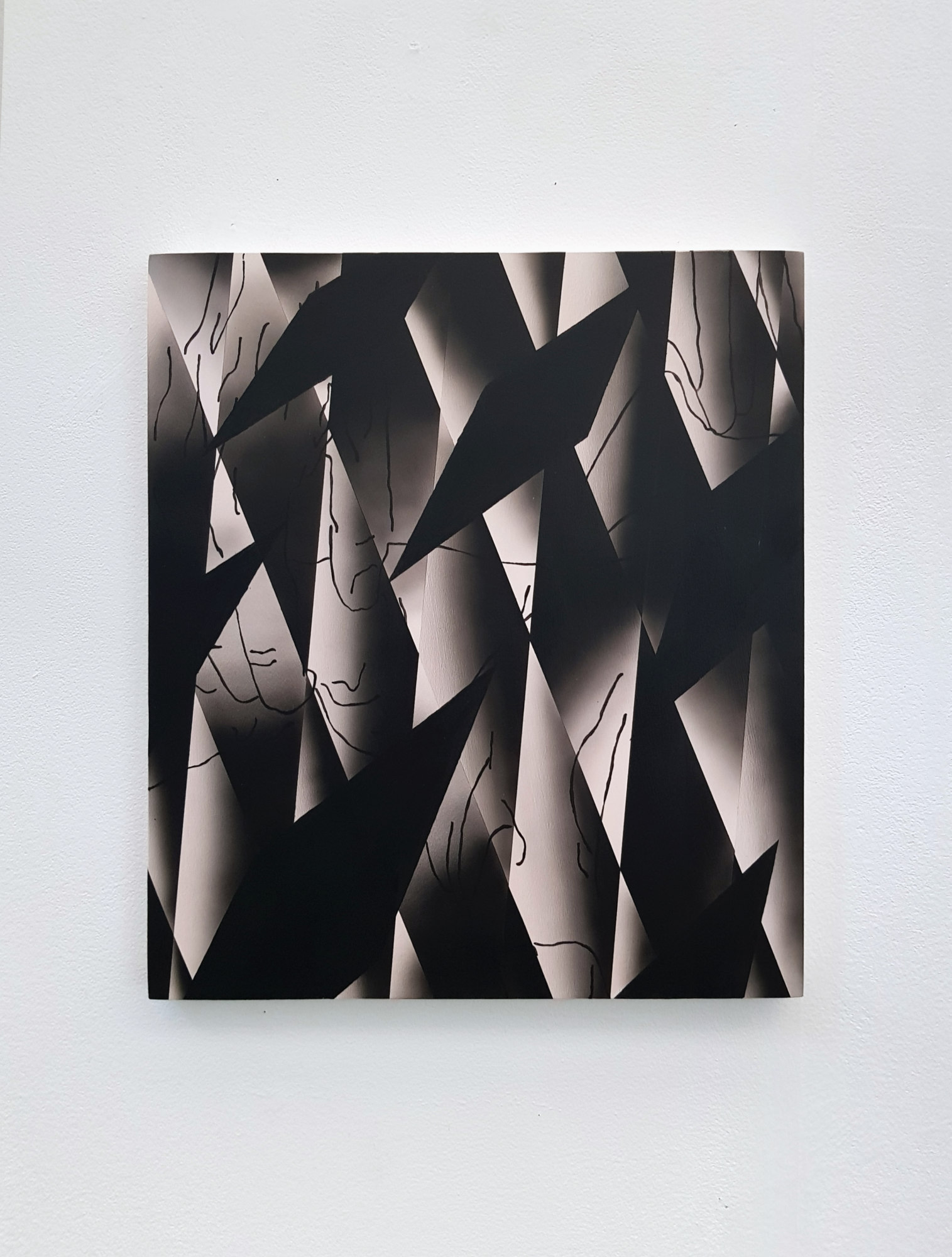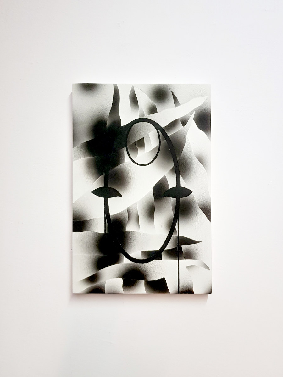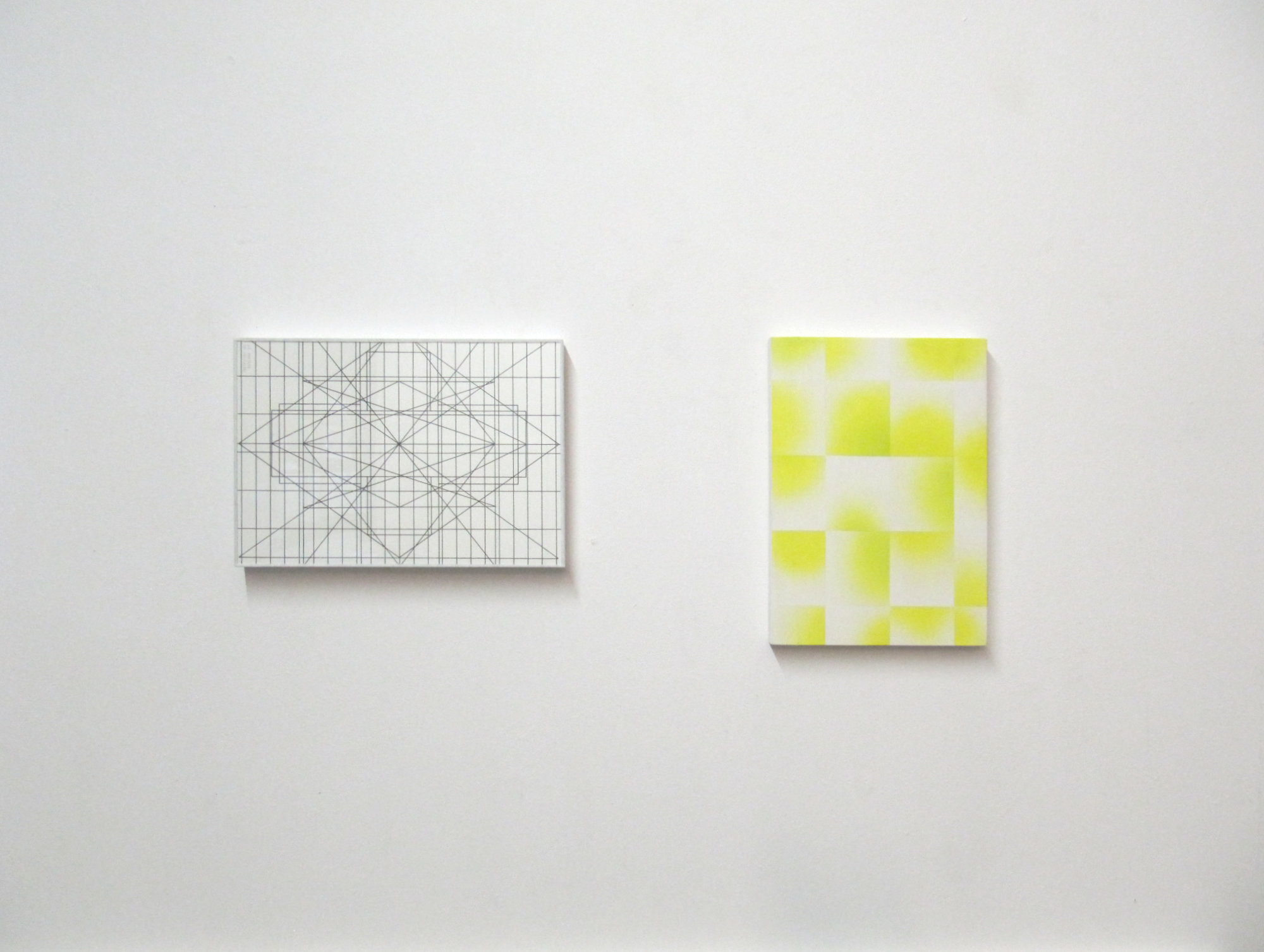 peinture fluorescente en aérosol sur papier, peinture sur verre.
